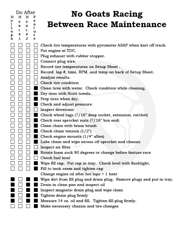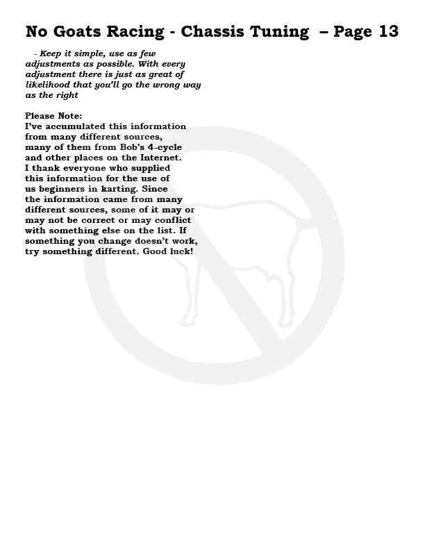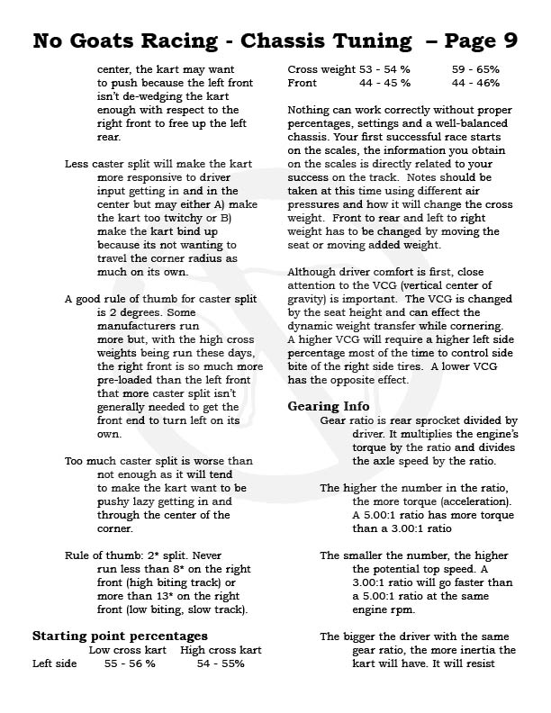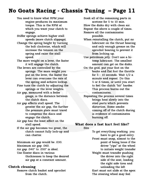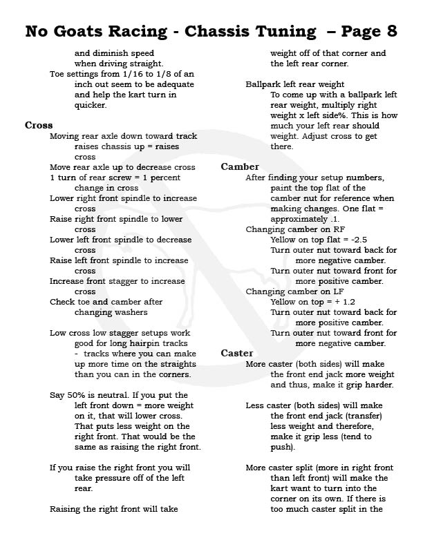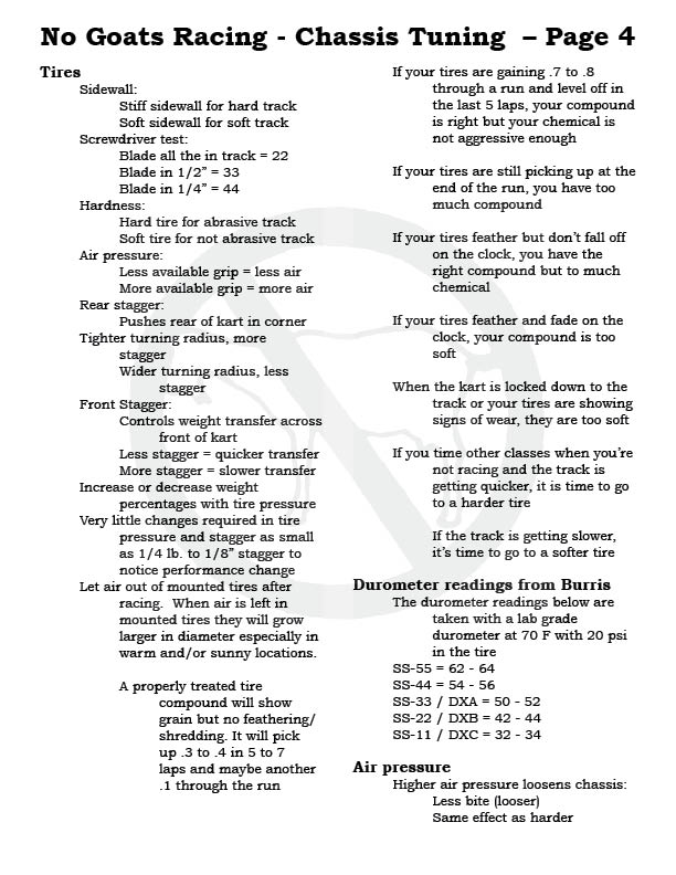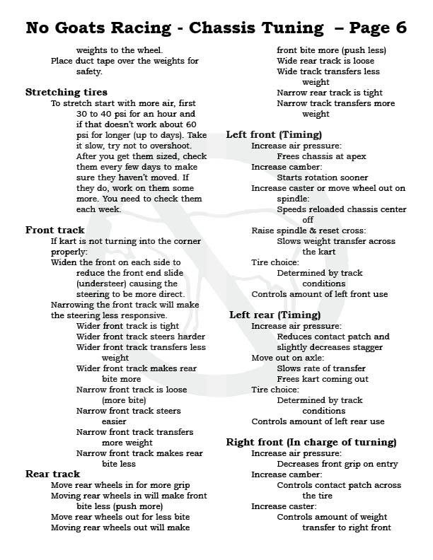 Please note, each No Goats page can be printed out, make a great addition to your tech notes and take to the track...