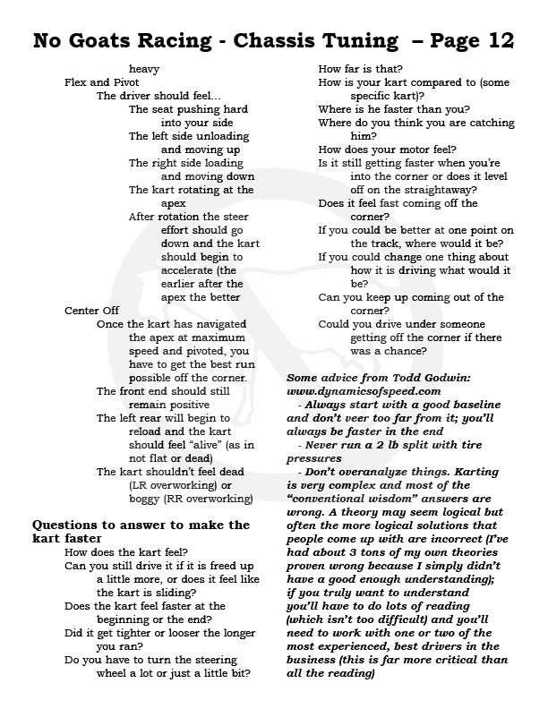 Please note, each No Goats page can be printed out, make a great addition to your tech notes and take to the track...